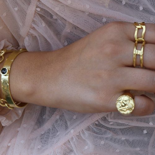 Anillo Ajustable hecho a mano en bronce y bañado en oro 18K.♡